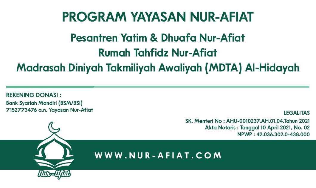 Bank Syariah Mandiri (BSM/BSI) 7152773476 an. Yayasan Nur Afiat Madani